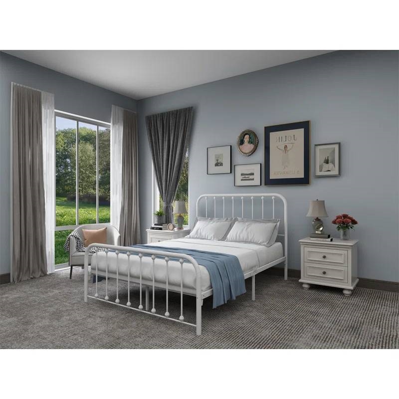 Home > Queen Classic White Metal Bed Frame with Rounded Corners Headboard and Footboard