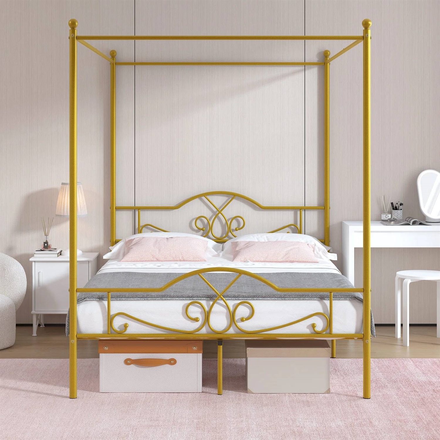Full size Gold Metal Canopy Bed Frame with 600 lb. Weight Capacity