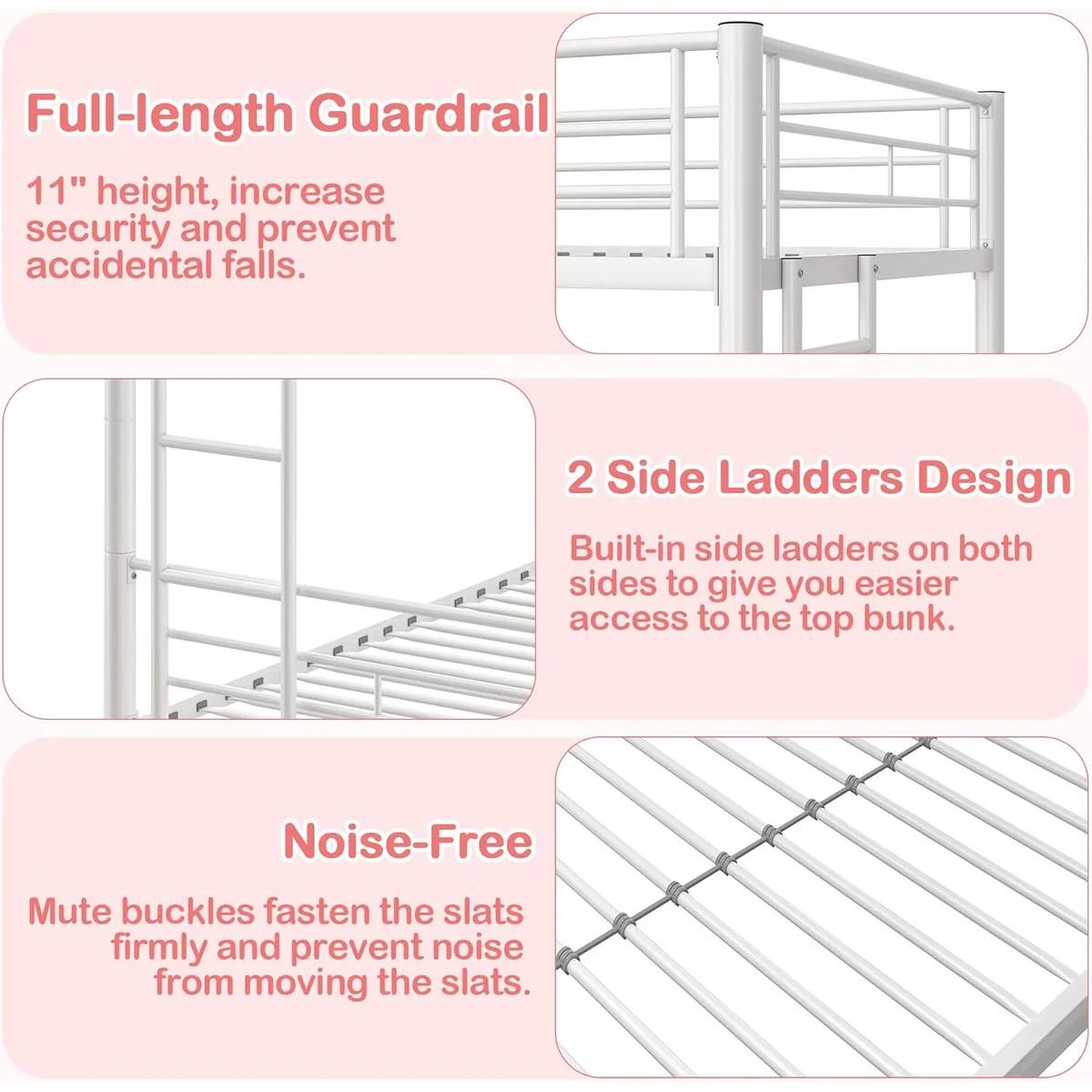 White Metal Twin over Twin Bunk Bed Frame with Two Side Ladders White Metal Twin over Twin Bunk Bed Frame with Two Side Ladders White Metal Twin over Twin Bunk Bed Frame with Two Side Ladders White Metal Twin over Twin Bunk Bed Frame with Two Side Ladders White Metal Twin over Twin Bunk Bed Frame with Two Side Ladders