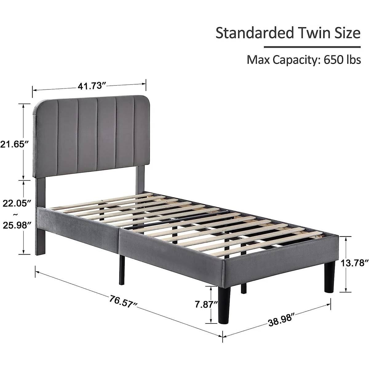 • Twin size Dark Grey Upholstered Platform Bed Frame with Headboard