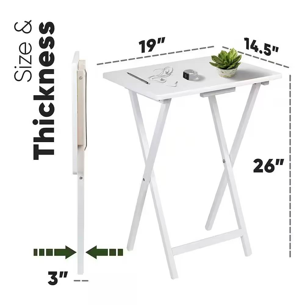 • Effortless Assembly: No assembly is needed for these tray tables that are collapsible after usage; Each tray table folds to just 3 inches thick for convenient and compact storage with an included rack for easy storage