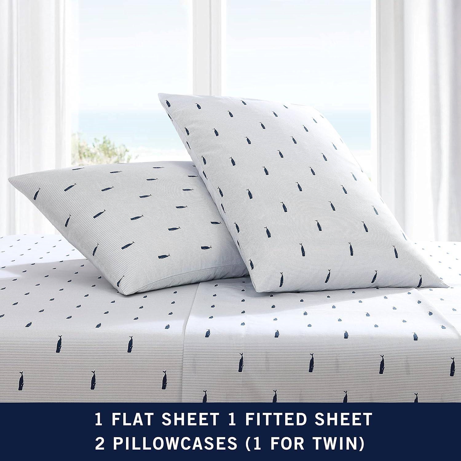 • Twin size Coastal Beach 100-Percent Cotton Navy Blue White Stripe Sheet Set