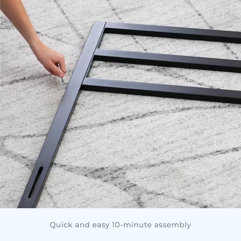 Complete your bedroom with sophisticated style, a modern feel, and guaranteed durability with the Twin size Sturdy Modern Black Metal Headboard. This headboard embraces a conventional design with horizontal metal bars that effortlessly exude style without being forced into one specific category. From the kid's room to the master suite, this Twin size Sturdy Modern Black Metal Headboard will become the focal point of any room it's in without stealing the entire show. It sits at 40 in. tall and included hardware and modification plates make it easy to securely attach this headboard to your current bed frame. Shipped in a box with all necessary hardware, all you'll need is a partner and 10 free minutes to go from box to ready-to-use. Available in California King, King, Queen, Full, and Twin sizes, this Twin size Sturdy Modern Black Metal Headboard will instantly upgrade any space with effortless style.