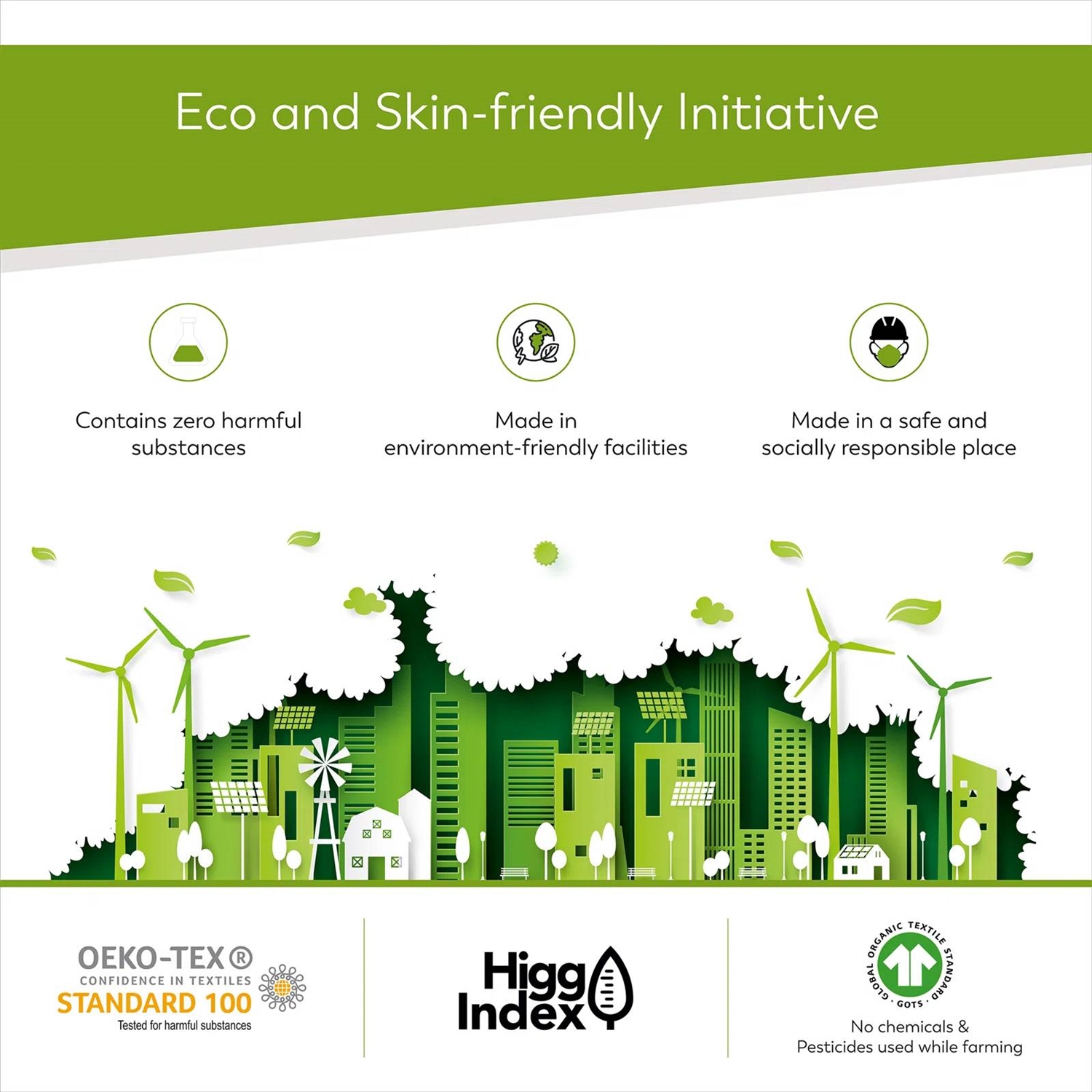 • Certified by GOTS and standard 100 by OEKO-TEX® for credible safety and reliability.