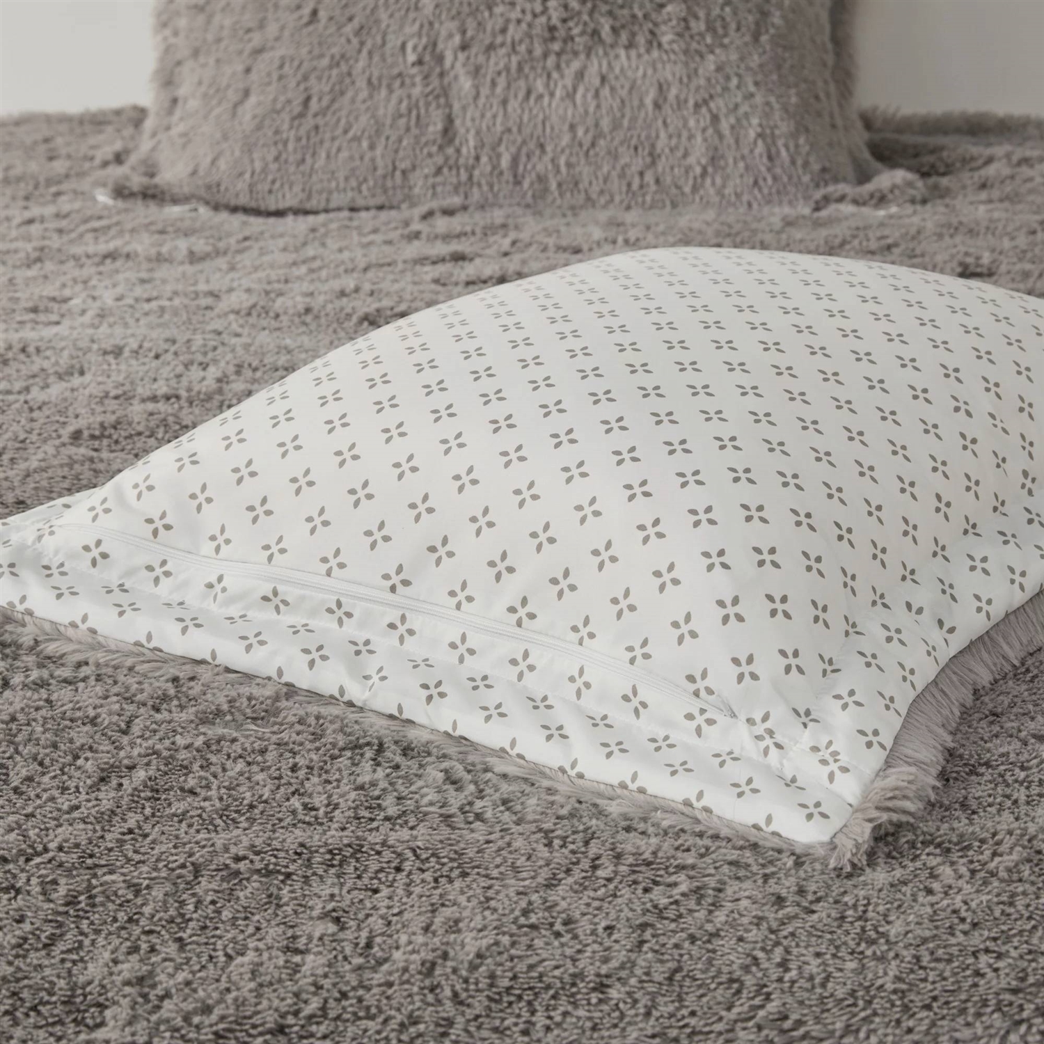 This Full/Queen size Grey Reversible Soft Sherpa Faux Fur 3-Piece Comforter Set is very soft and reversible to microfiber with beautiful petals print. It offers incredible 2 in 1 value for ultimate comfort. The reversible dual texture fabric is a perfect combination for all season comfort. You can use the faux fur side for colder season, and the print side for warmer. Now you can use your favorite cozy winter cover all year round! Available in different sizes to choose. For your convenience, it is also machine washable.