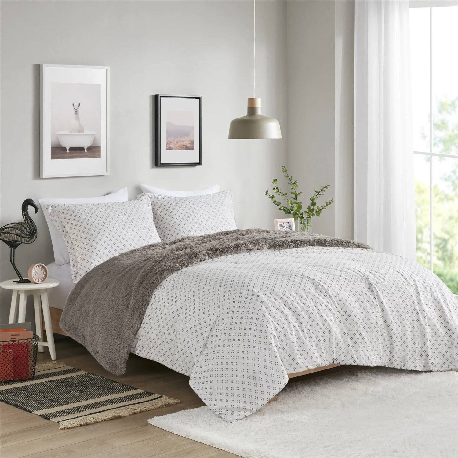 • Full/Queen size Grey Reversible Soft Sherpa Faux Fur 3-Piece Comforter Set