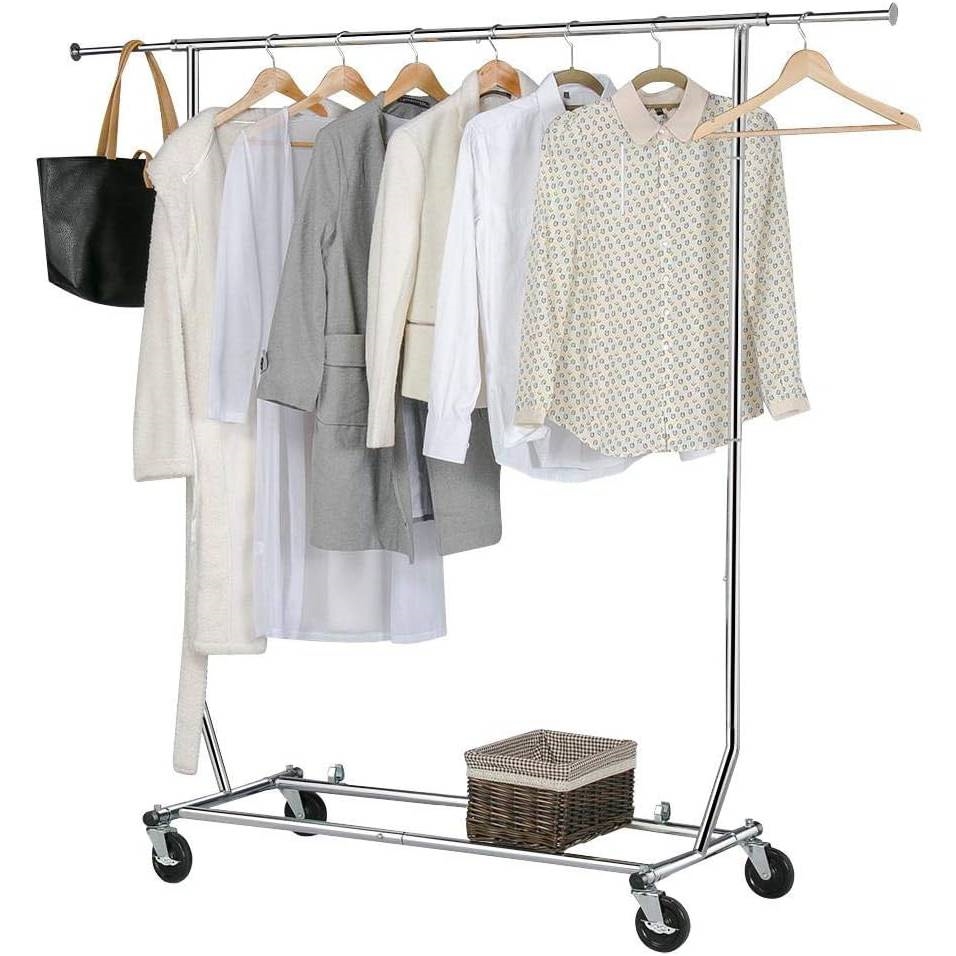 • STRONG CHROMED METAL RACK: Constructed of heavy gauge metal with chromium plating, this garment rack boasts high strength and outstanding rust resistance. With a 200-pound weight capacity, it can hold up and roll easily even with your heaviest coats.