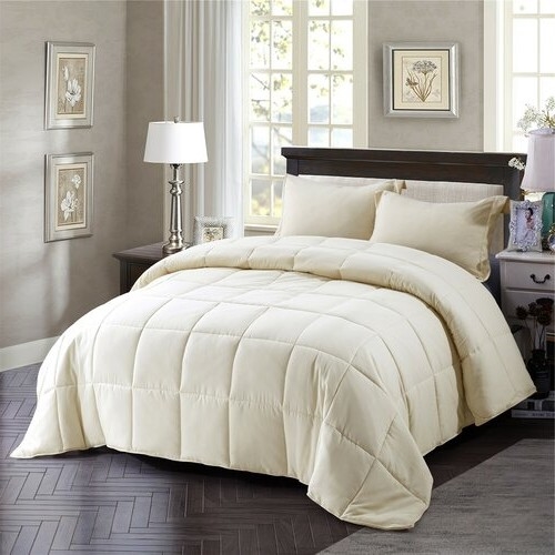 Update your bedroom with this Twin/Twin XL Traditional Microfiber Reversible 3 Piece Comforter Set in Ivory. This comforter set has nice double stitching overclock with piping making it elegant and luxurious. Crafted from microfiber polyester, this fade- and stain-resistant set can be tossed into the washing machine and dryer for fuss-free upkeep. The baffle box construction crafted with high-density needle stitching prevents the fiberfill from shifting, even after a wash.