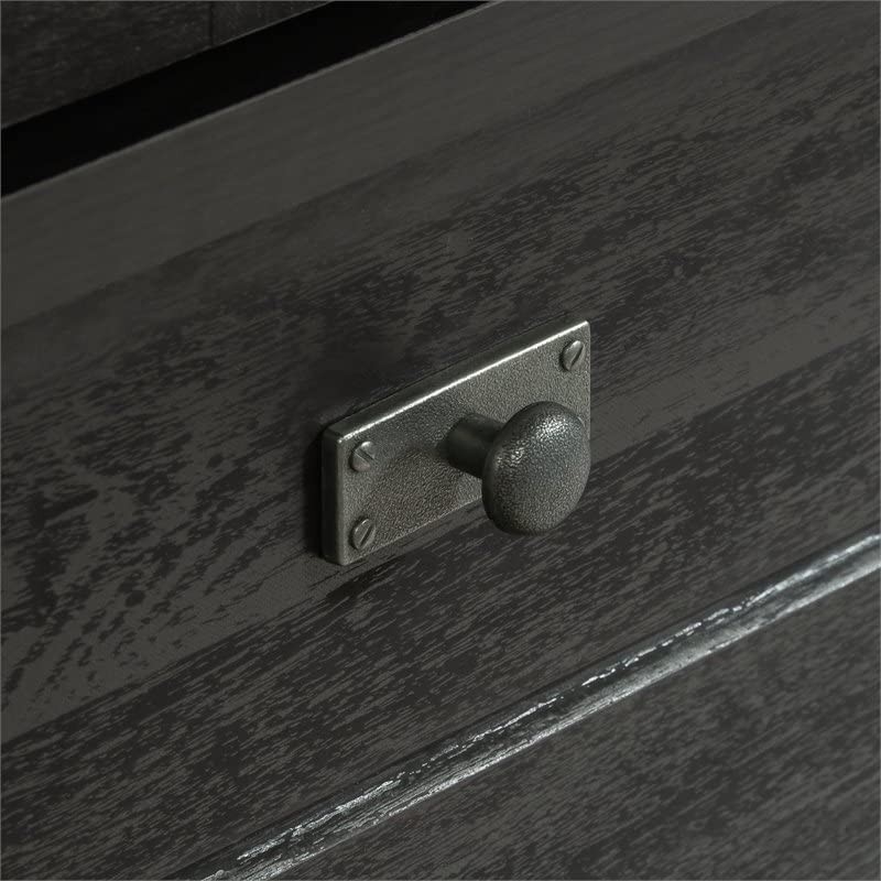 This FarmHouse Black Oak Drawer and Garment Rod Wardrobe Armoire is sleek, stylish, and functional. Behind the 2 large doors of this armoire is a hidden storage area that includes a garment rod and an adjustable shelf. . The adjustable shelf in this wardrobe cabinet can be moved to different heights to create flexible storage for an array of different items. The lower storage drawer opens and closes on smooth metal runners for easy access.