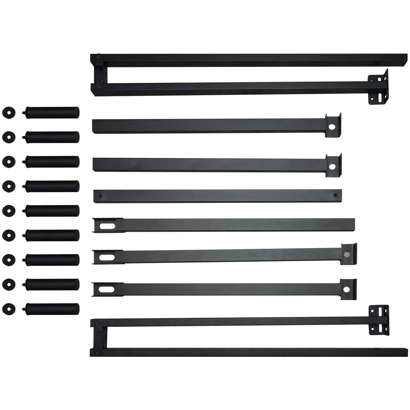 Reliable and Sturdy 9-Leg Metal bed Frame with headboard brackets. This king size heavy duty metal bed frame features steel construction and a 3,000 lbs. max weight capacity. Provides stable support for king size box spring and mattress set. Mattress and boxspring sold separately. Upgraded design, tis king size bed frame has 9-leg support for maximum stability. Plastic gasket ends on each leg protect your floors and prevent squeaking. Ensure excellent sleep quality every night. Headboard brackets are included with this king bed frame to make attaching a headboard simple and easy. Please note that hardware, bolts, and screws for attaching a headboard are not included. Easy to assemble. The compact design can be set up within 10 minutes. No tools necessary for assembly. The bed frame can be assembled with only your hands, without any tools.
