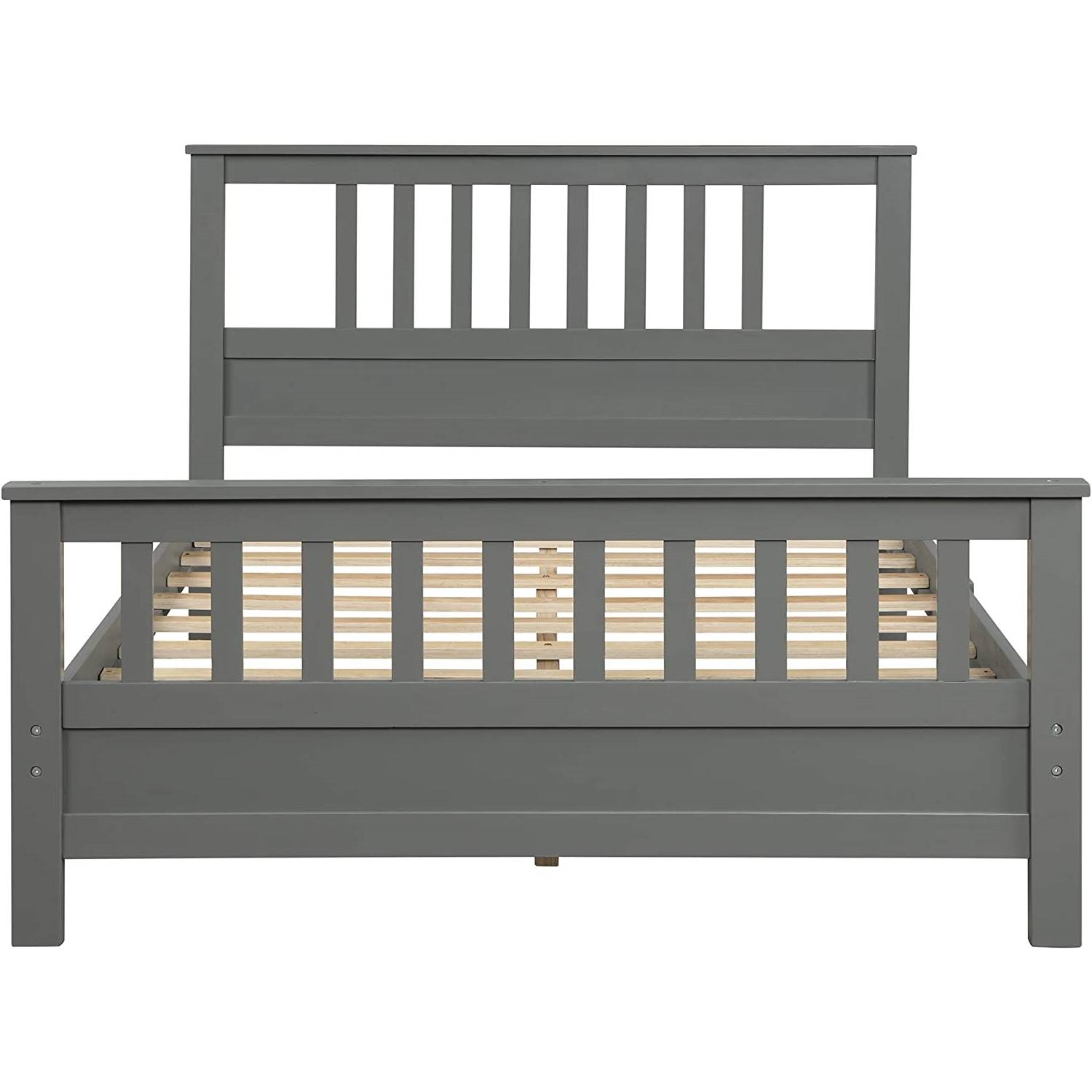 Home > Grey Pine Wood Slatted Platform Headboard Footboard Full Size Bed