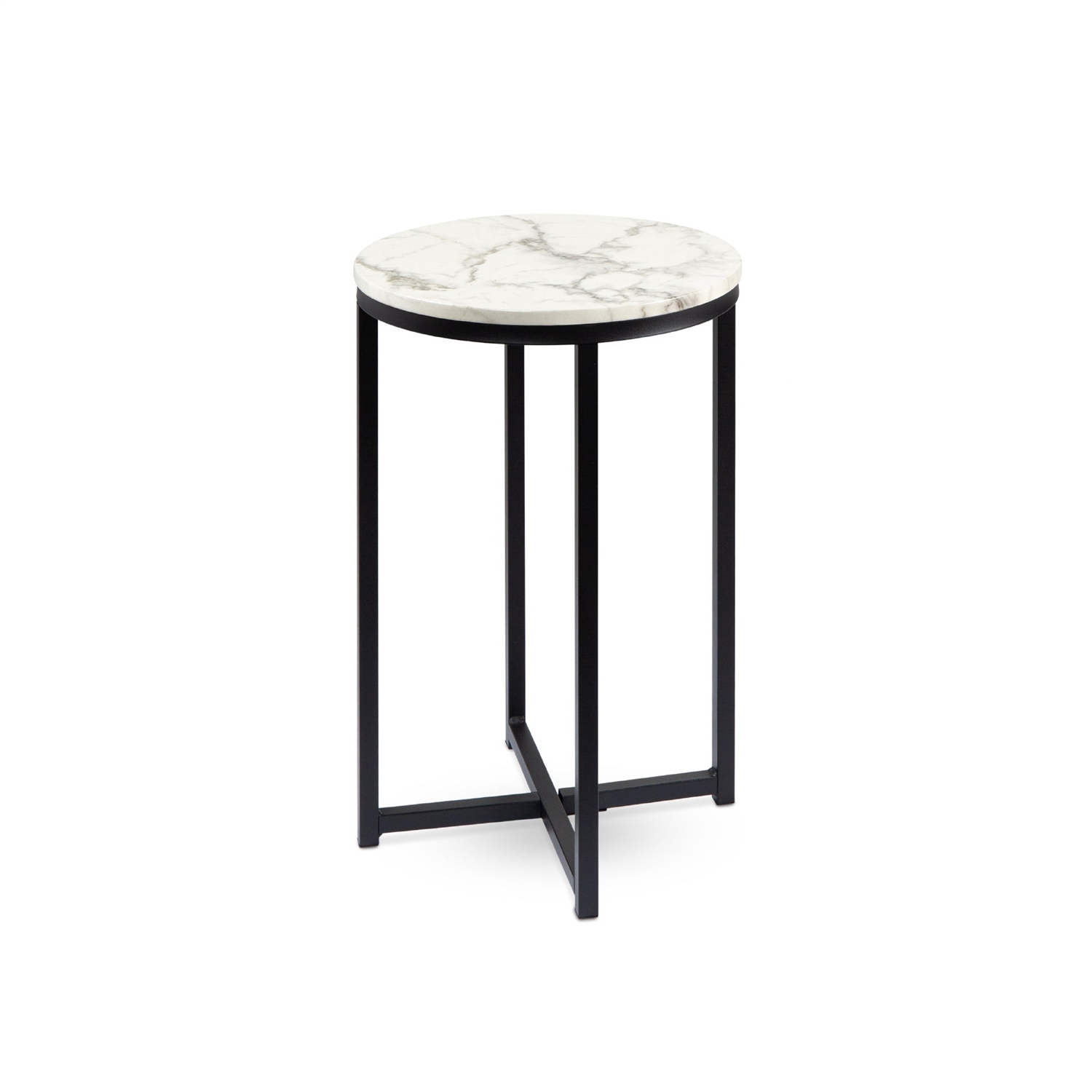 Round Cross Leg Design Coffee Side Table Nightstand with Faux Marble Top White/Matte Black Round Cross Leg Design Coffee Side Table Nightstand with Faux Marble Top White/Matte Black