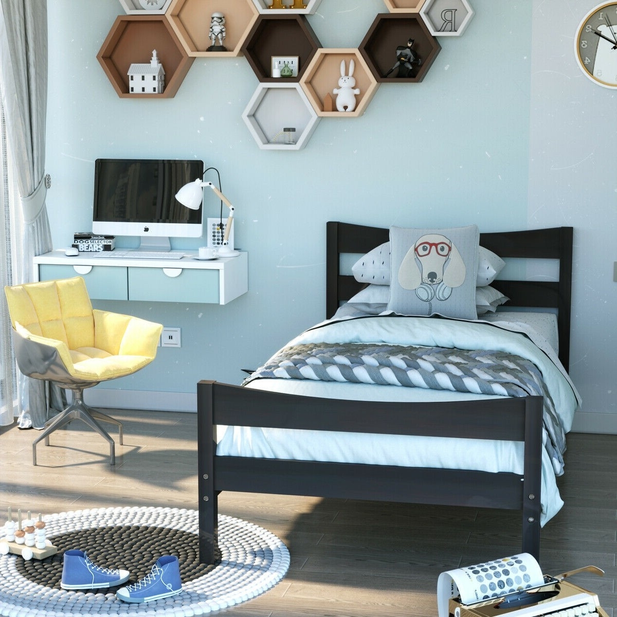 Twin size Farmhouse Style Pine Wood Platform Bed Frame in Espresso