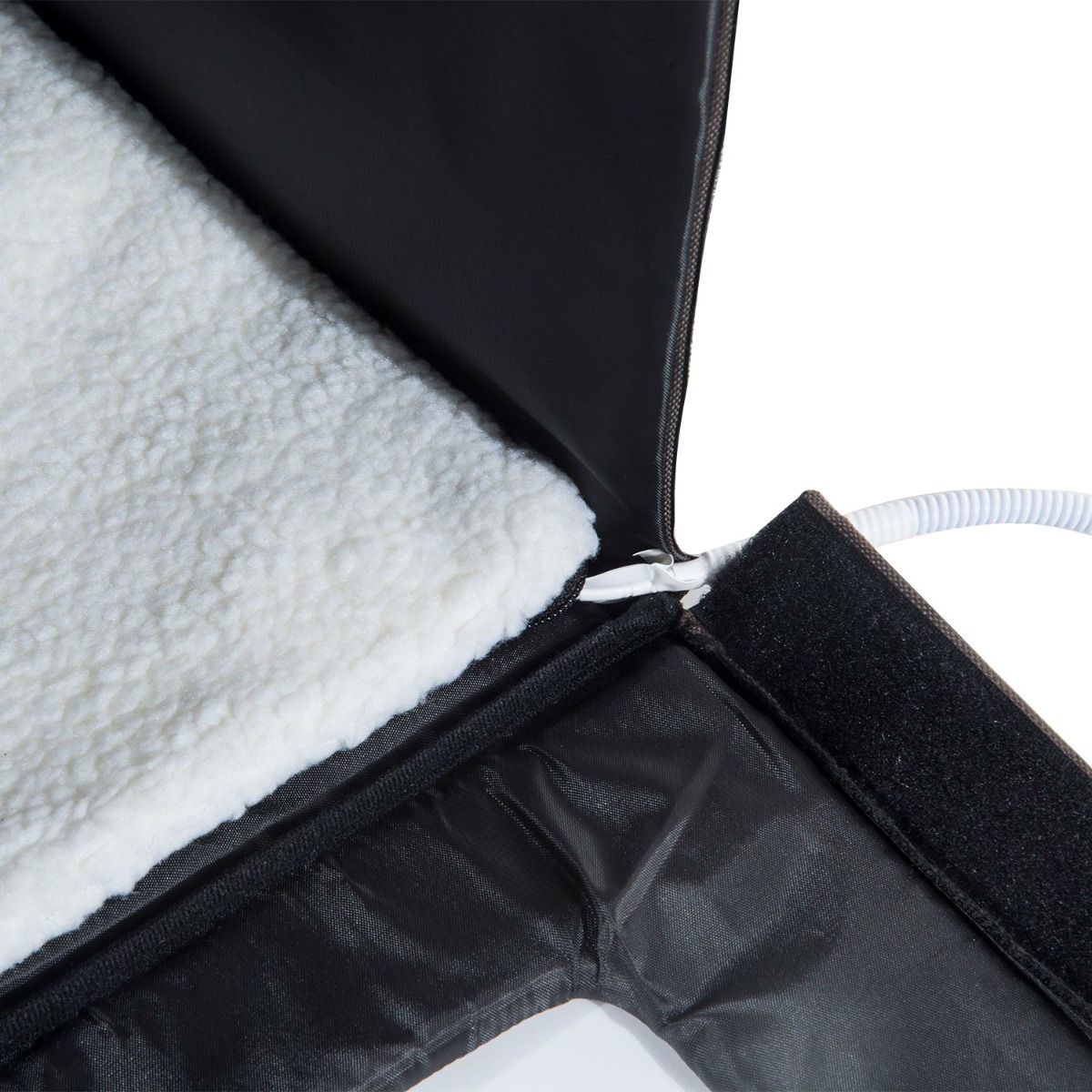 • The heated/unheated pad includes a lamb wool cloth cover for additional warmth and comfort