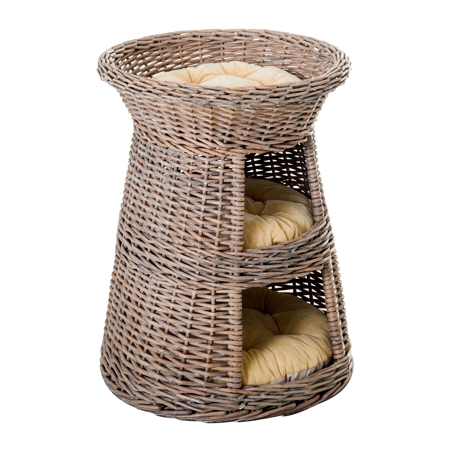 Eco Friendly 3 Tier Round Rattan Wicker Elevated Cat Condo Bed Beige Eco Friendly 3 Tier Round Rattan Wicker Elevated Cat Condo Bed Beige
