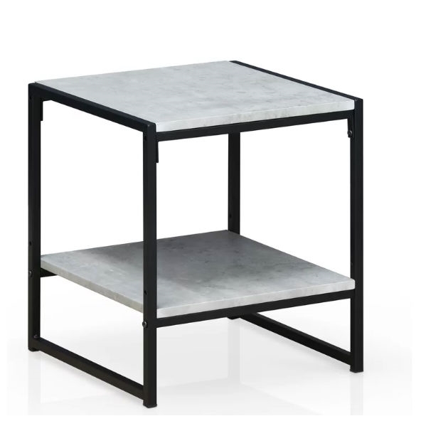 This Modern Metal Frame End Table Nightstand with Faux Stone Top and Bottom Shelf comes in dark oak, dark walnut and stone white that fits the style most living spaces. These models are designed to fit in your space, style and fit on your budget. Modern Metal Frame End Table Nightstand with Faux Stone Top and Bottom Shelf is a 2-Tiers square table with no foul smell, durable and easy to assemble. A simple attitude towards lifestyle is reflected directly on the design of this, creating a trend of simply nature. Care instructions: wipe clean with clean damped cloth. Avoid using harsh chemicals. Pictures are for illustration purposes only. All decor items are not included in this offer.