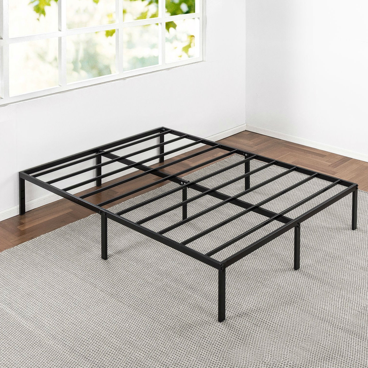 • Full size Black Metal Platform Bed Frame with Headboard Attachment Slots