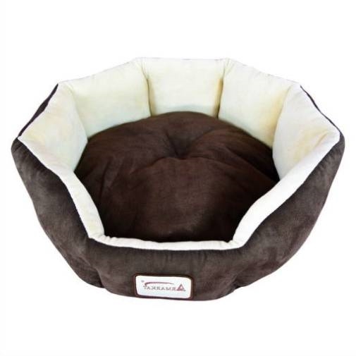 This Mocha Beige Round Oval Pet Bed for Small Dogs or Cats has Faux Suede and Soft Velvet with waterproof and skid free base. Filled with extra thick 100-percent poly fill for maximum comfort. Machine washable Color: Mocha and Beige Size: Cat Bed or Extra Small Dog Bed.