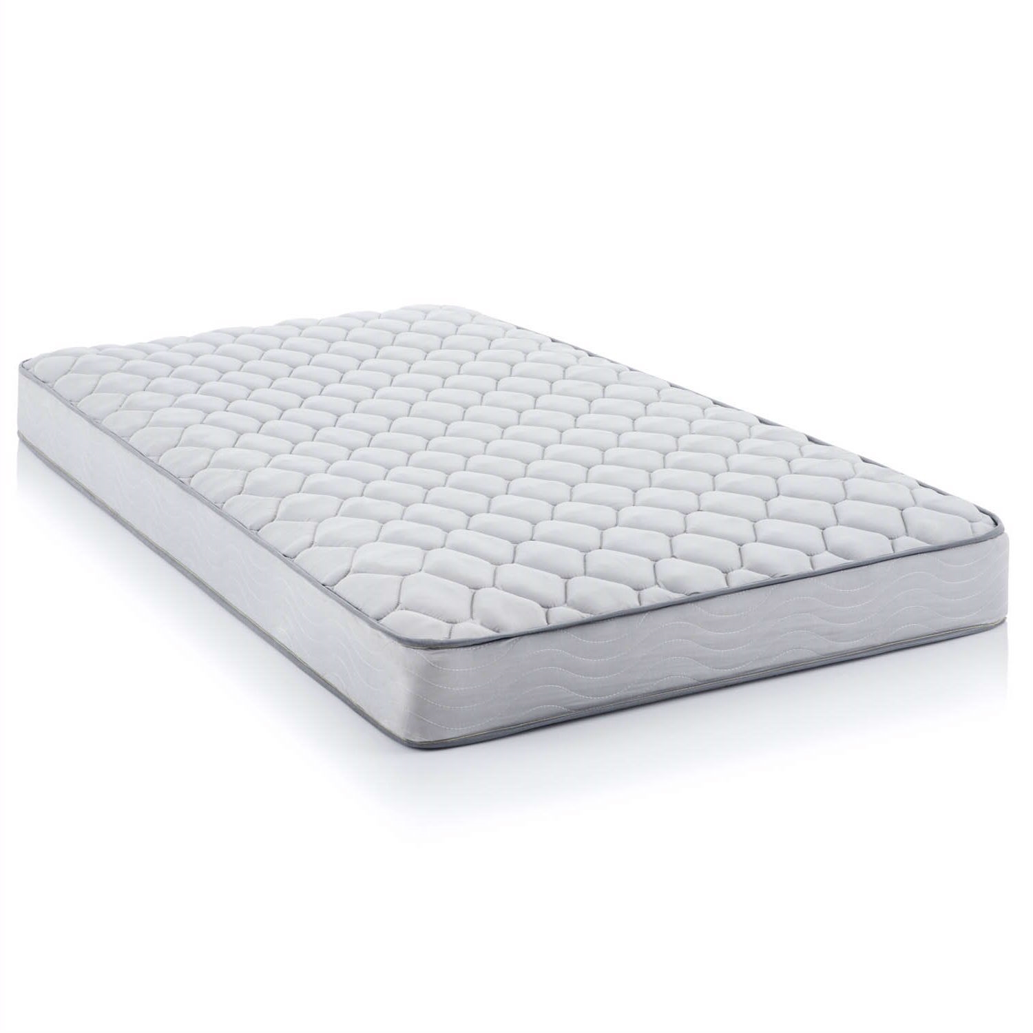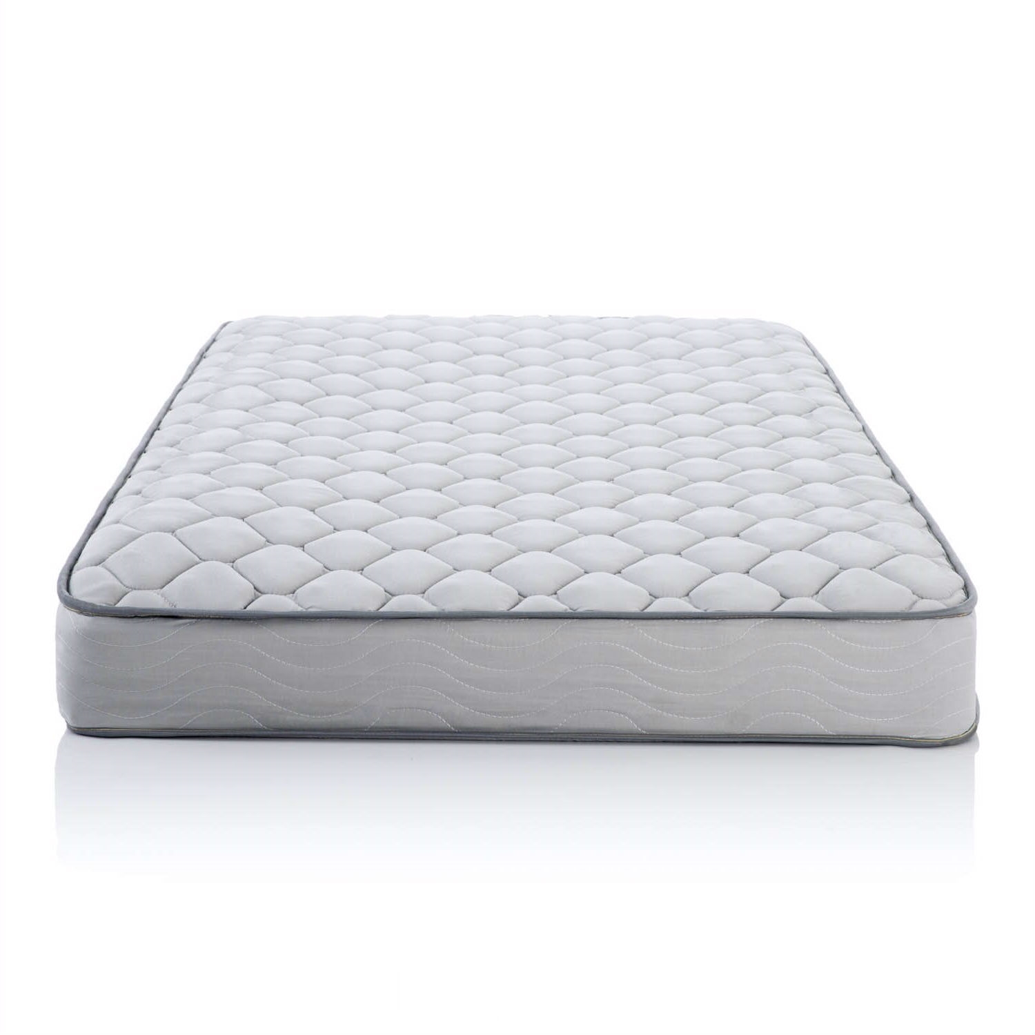 Get a restful night's sleep on this California King 6-inch Thick Innerspring Mattress with Quilted Cover - Medium Firm. A quilted fabric cover and inner foam layer provide comfort and resilience, while heavy-gauge steel coils offer lasting support. Because your family's safety is as important as its comfort, this spring mattress has a fire resistant barrier that's tested to ensure it meets safety standards. For easy shipping and simple set up, this mattress comes compressed and rolled.