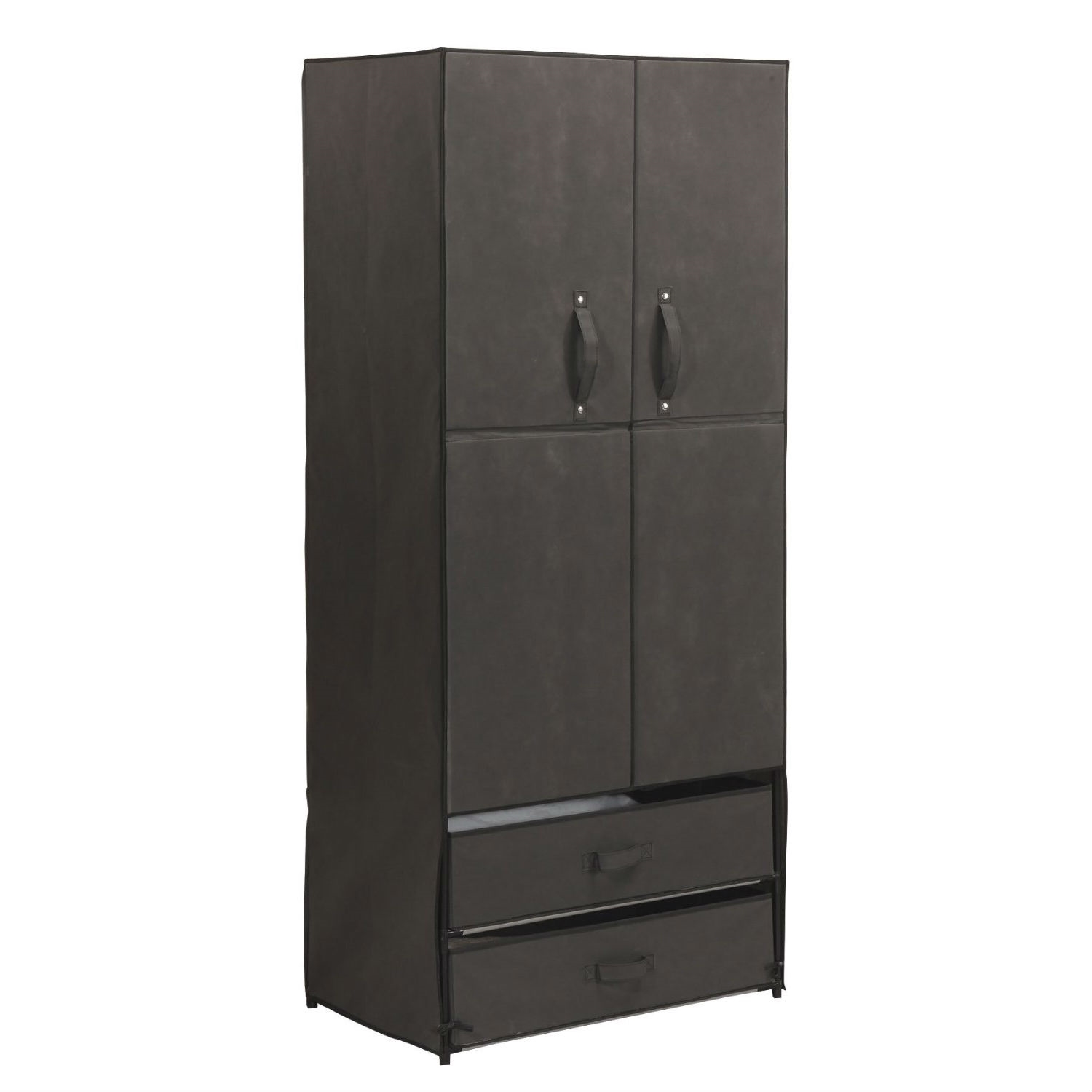 Customize this Durable Steel Frame Wardrobe with Canvas Sides with magnetic doors to meet your needs. Two doors feature easy-open handles with secure-close magnets. Inside, you'll find 2 shelves and a 27" L hanging rod. Below the doors are 2 handy drawers that can be removed to make shelves -- you choose! Sturdy steel frame with dark, neutral canvas complements any decor and is easy to wipe clean. This portable wardrobe is perfect for bedroom, guest room, laundry area and more! 68" H x 17 7/8" W x 28 3/4" L overall. Drawers each measure 27 1/2" L x 17 1/4" W x 6 3/4" H. Shelves are 27 1/4" L x 17" W x 3/4" H.