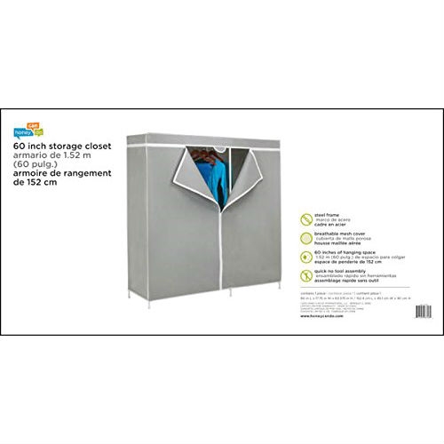 This 60-inch Grey Portable Closet Clothes Organizer Wardrobe provides 60-Inch of total hanging space. steel frame wardrobe, no tool assembly, 60" of hanging space. Durable steel frame construction. Easy to assemble with no power tools necessary, customize unit to fit your needs.
